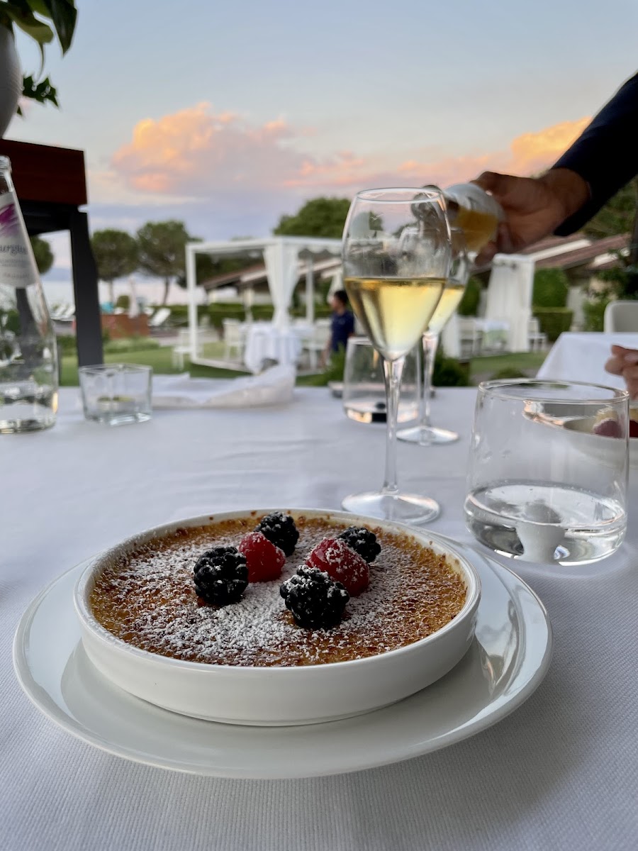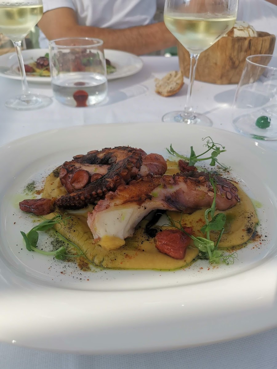 Sehr freundlicher, höflicher und zuvorkommender Service, tolle Weinberatung. Das Essen ist nicht ganz günstig, aber sehr lecker! Man hat eine wunderschöne Aussicht auf den See und die Hotel-Anlage des Splendido Bay Hotels.
